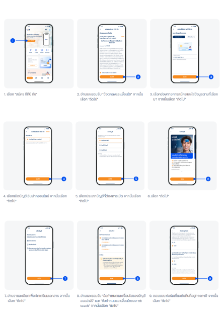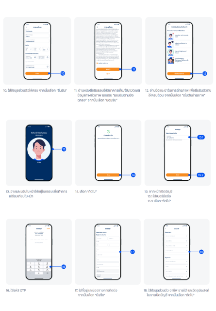 10 B. กรณียืนยันด้วย NDID – ยอมรับเงื่อนไขและข้อตกลง เลือกผู้ให้บริการยืนยันตัวตนและทำตามขั้นตอน จากนั้นกรอกใบสมัครต่อในแอป