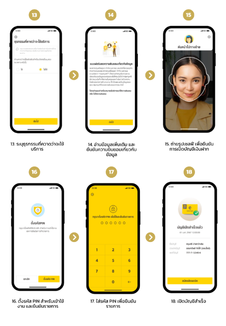 15. ถ่ายรูปเซลฟี เพื่อยืนยันการเปิดบัญชีเงินฝาก