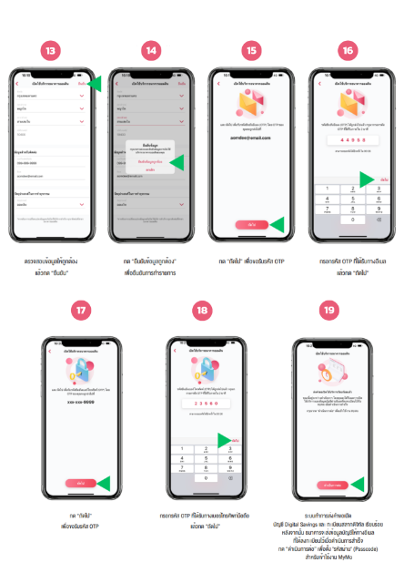 13. ธนาคารจะแจ้งหมายเลขบัญชีที่เปิดเรียบร้อยผ่าน SMS / อีเมล