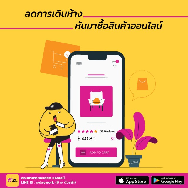 ดาวน์โหลดแอป Daywork ติดเครื่องไว้ส่องหางานพาร์ทไทม์อีกมากมายได้แล้วที่ Google play และ App store