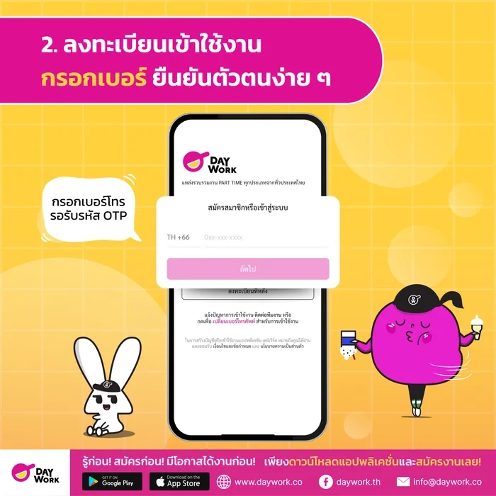 1. ดาวน์โหลดแอป Daywork ก่อนเลยสิ!
