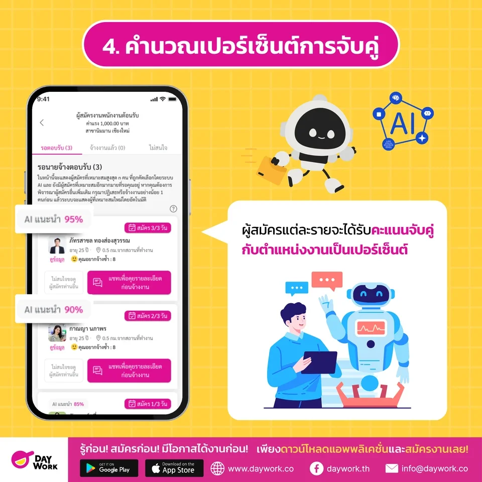 3. AI คัดเลือกผู้สมัครจากฐานข้อมูลแอป Daywork