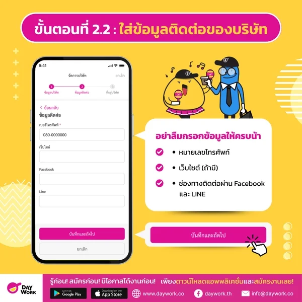 2.2 ใส่ข้อมูลติดต่อของบริษัท
