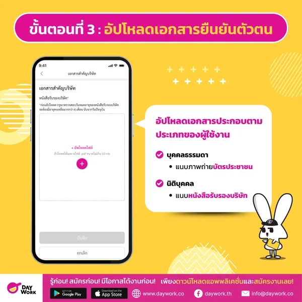 ข้อจำกัดนี้มีขึ้นเพื่อรักษาความปลอดภัยของผู้ใช้งาน และสร้างความมั่นใจให้กับแรงงานที่สมัครเข้ามา หากต้องการปลดล็อกการใช้งานทั้งหมด รวมถึงเพิ่มความน่าเชื่อถือของบริษัทในสายตาผู้สมัคร ระบบแนะนำให้ดำเนินการอัปโหลดเอกสารยืนยันตัวตนให้ครบถ้วนโดยเร็วที่สุดผ่านเมนู “บัญชี” ภายในแอป